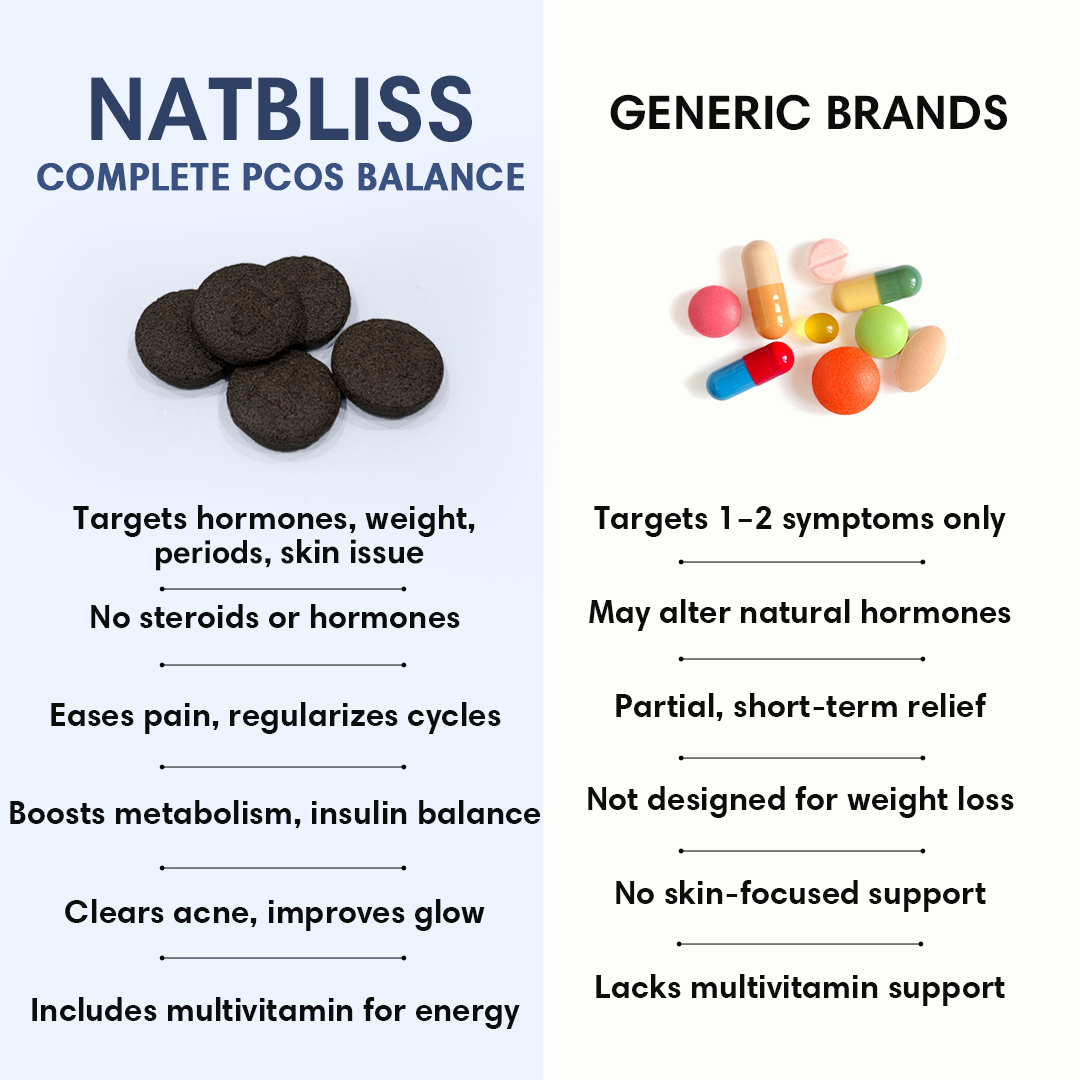 Balances hormones naturally to reduce irregular cycles, facial hair, and mood swings.