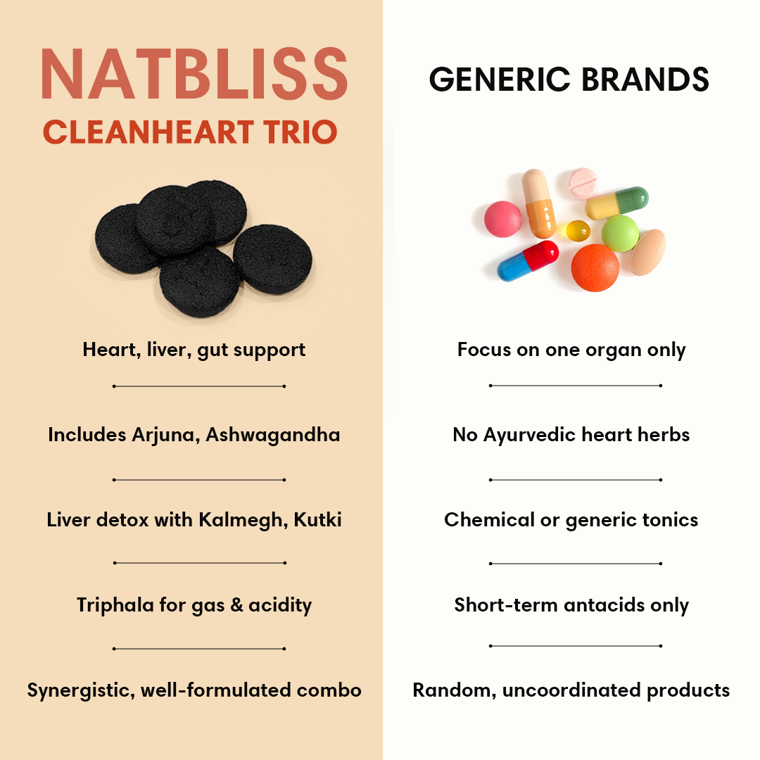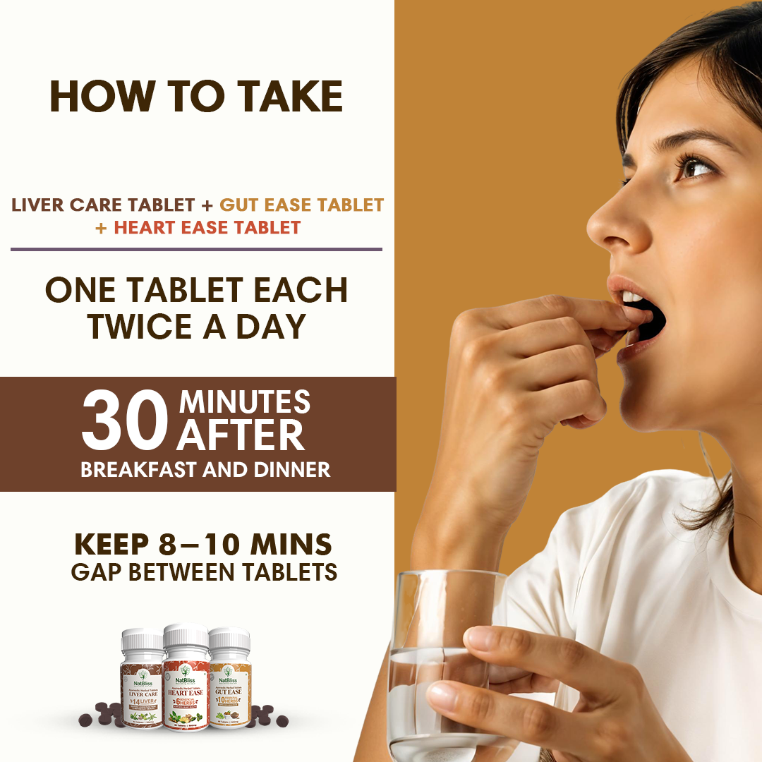 The Gut Ease, Liver Care, and Heart Ease Tablet Combo offers a complete Ayurvedic approach to strengthen your digestion, detox your liver, and support heart health. These three systems are deeply connected—better gut health improves nutrient absorption, liver detox aids metabolism, and both contribute to a healthier heart. This combo works in sync to reduce inflammation, boost energy, and promote overall wellness—naturally.