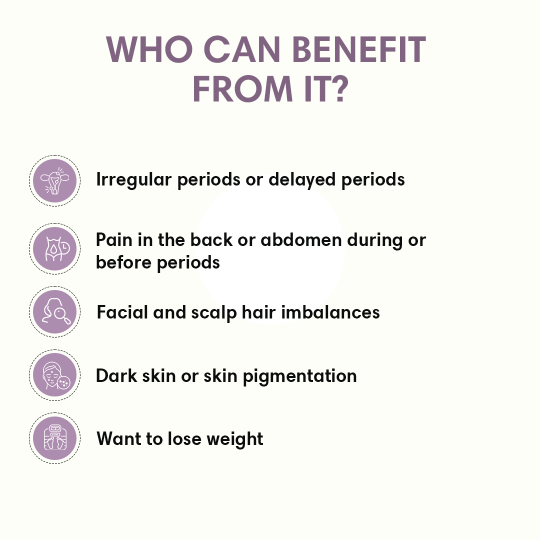 👨Helps relieve menstrual pain, boosts metabolism, and manages PCOS-related weight gain.